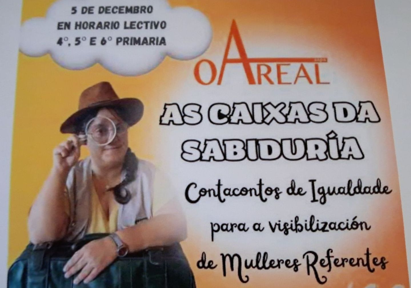 O alumnado de 4, 5 e 6 de primaria tiveron o pracer de asistir ao contacontos de igualdade para a visibilización das mulleres referentes. Decembro 2025.