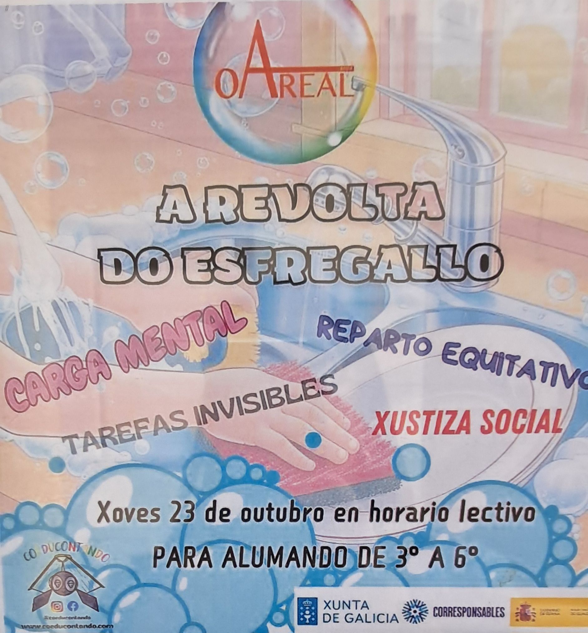 O alumnado de 3º a 6º de Educación Primaria participou na Revolta do Esfregallo, ou como coñecer xogando a carga mental. o reparto de tarefas ou a xustiza social dunha maneira lúdica. Grazas á ANPA e a subvención CORRESPONSABLES da Xunta de Galicia.