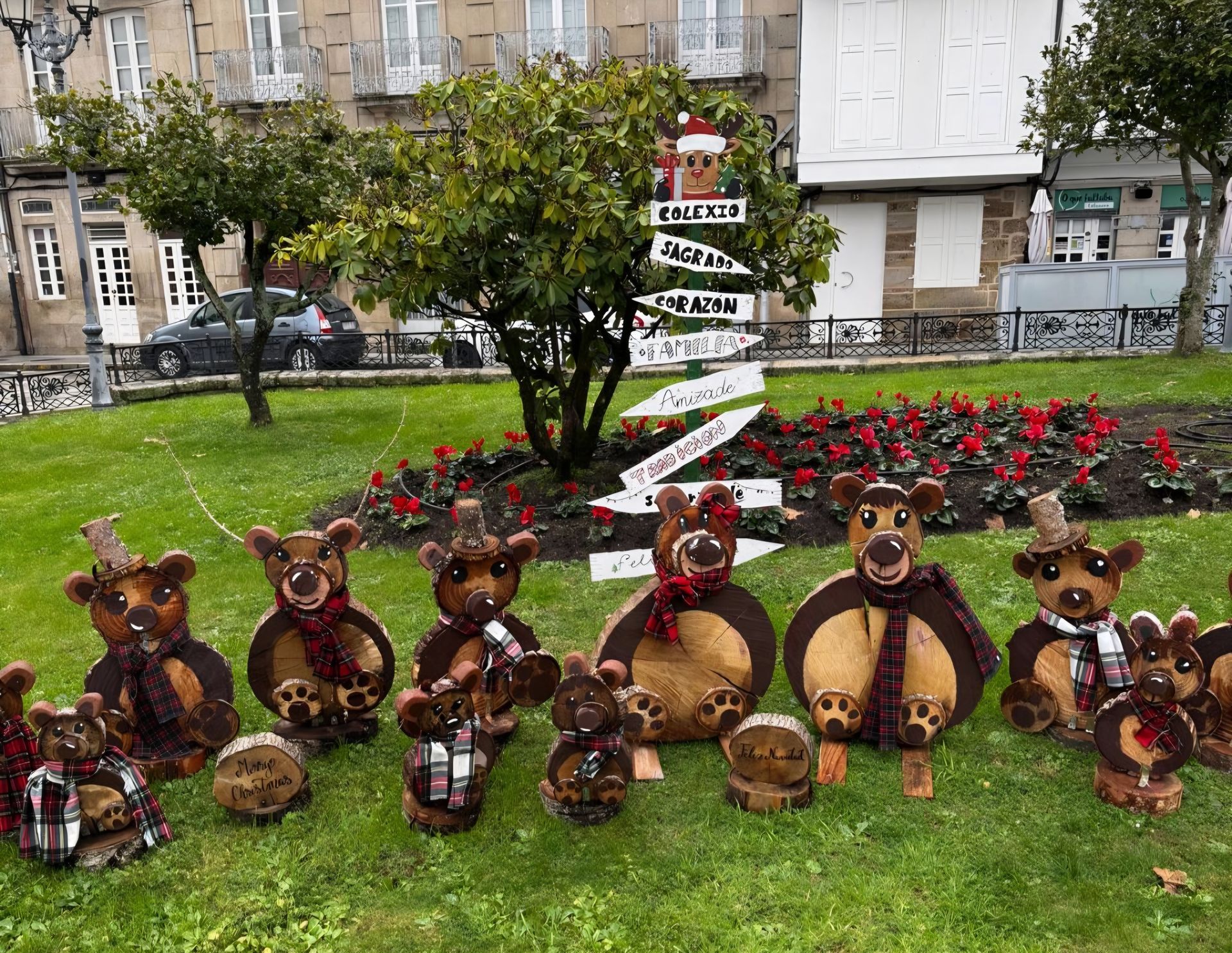 Un ano máis as nosas familias de osos e de porquiños volveron decorar o xardín. O alumnado de 4º da ESO preparou, con axuda do profesorado a decoración navideña para que todo os veciños de Celanova puideran desfrutala.